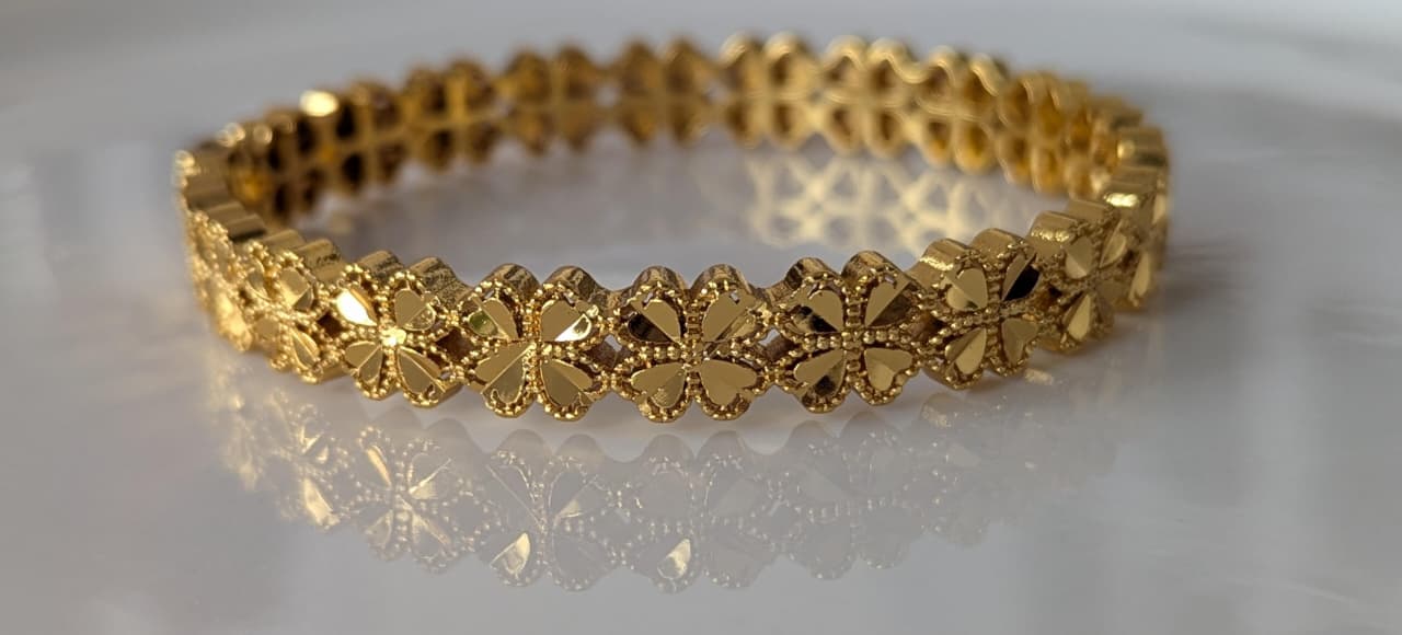 This elegant hand cuff is beautifully designed with delicate floral patterns and finished with premium gold plating. The intricate flower detailing gives it a graceful and feminine look, making it a perfect accessory for adding charm to any outfit