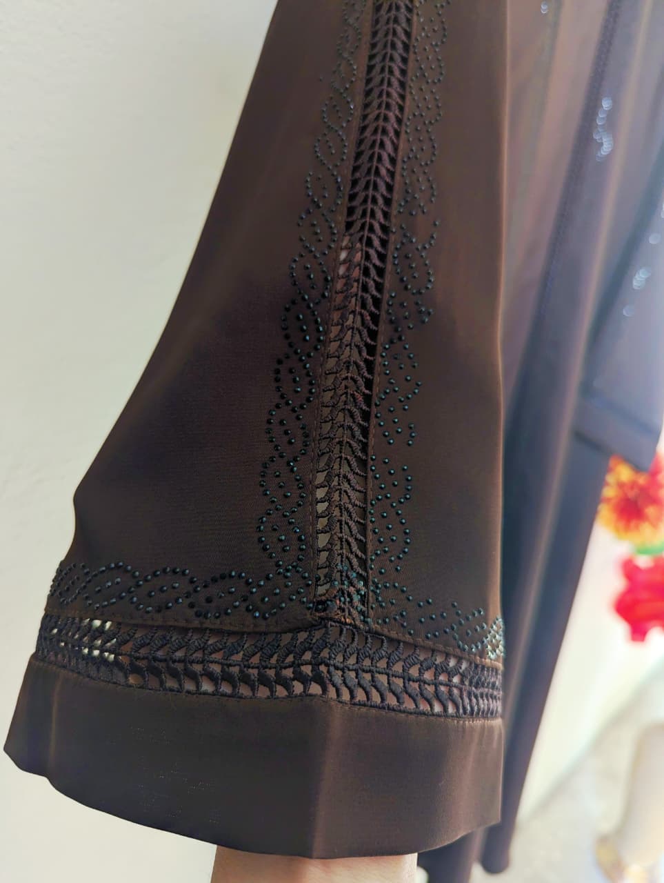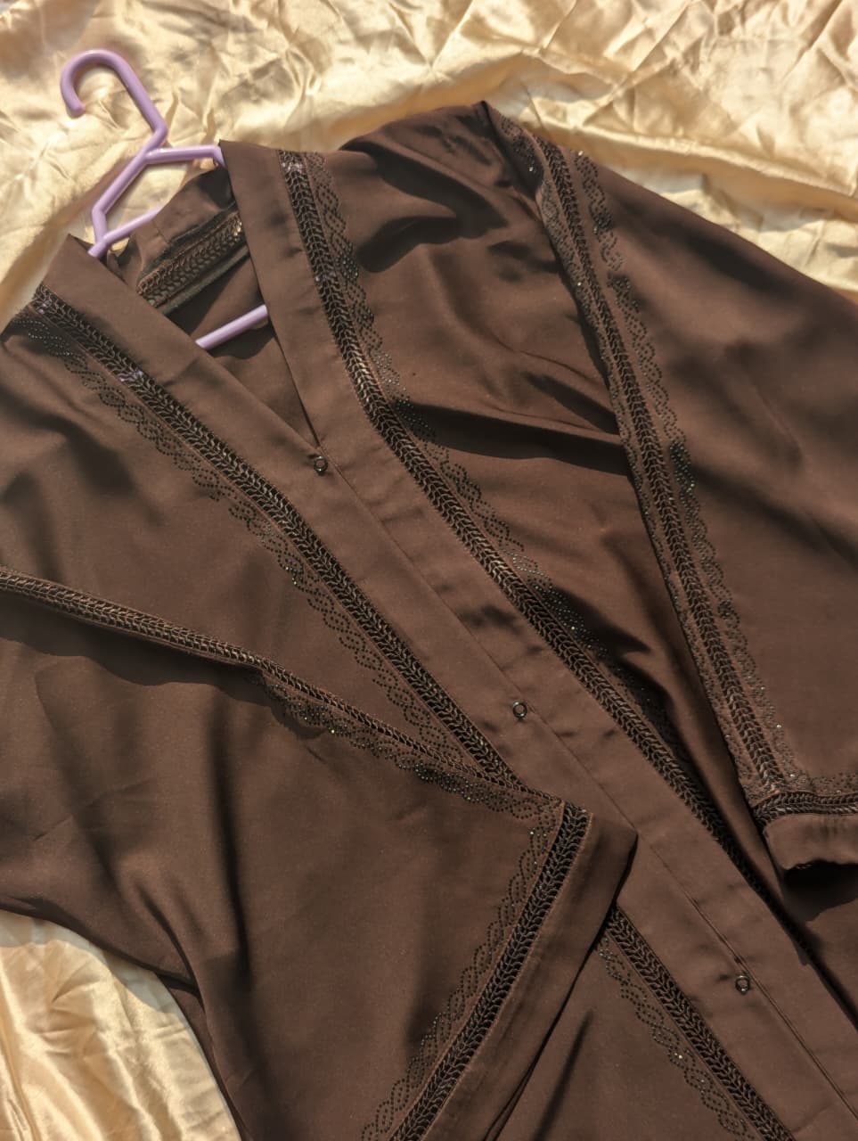 Made from high-quality, breathable fabric, it offers a comfortable fit suitable for everyday wear as well as special occasions. The soft brown shade adds warmth and sophistication, while the intricate lace detailing enhances its overall charm without being overpowering.
