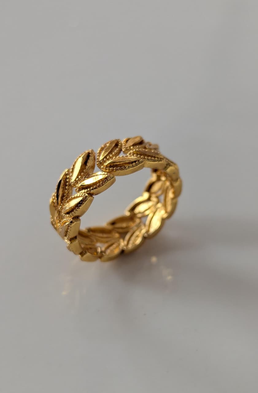 This beautiful ring features a graceful leaf design with a shiny golden finish, giving it a natural yet luxurious look. The delicate leaf detailing adds a soft and elegant touch, making it a perfect statement piece for any occasion.